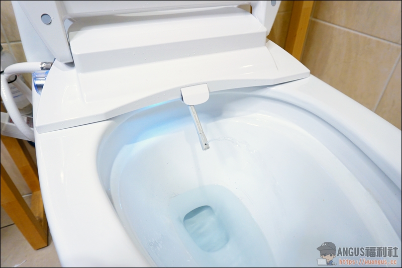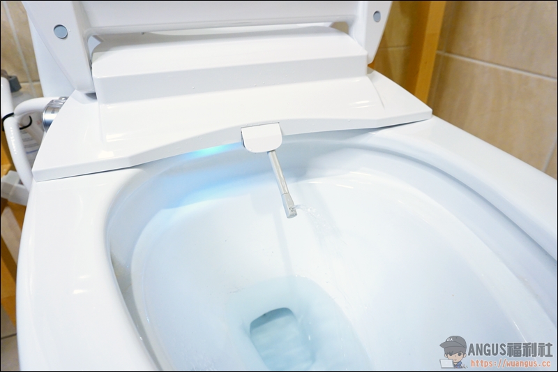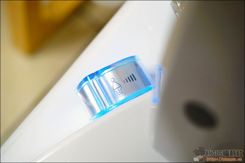 ▼ 在便座上還有感應的 Sensor 設計,當人體坐上去之後才會有清潔的功能,否則沒有感應到人體則會有警示音告知,側邊的旋鈕水壓沒有關閉完全。