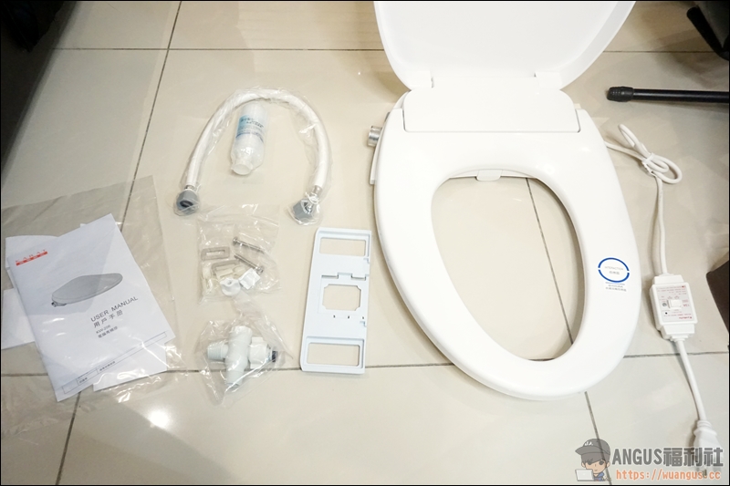 ▼ KW-206電腦馬桶座所有的內容物包括:主商品KW-206馬桶座*1組、安裝模板*1張、固定螺絲*1包、固定板*1片、三通接頭*1個、進水軟管*1條、精密水過濾器*1個、使用說明書*1本。