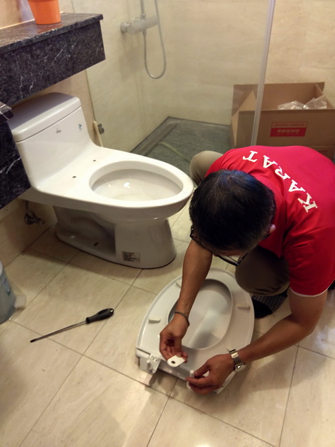 接下來進入正式安裝的部份啦,拆下原有的馬桶座。