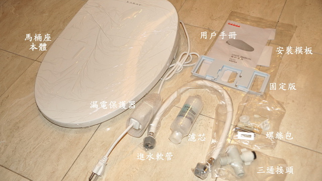 這就是KARAT凱樂衛浴的KW-206超薄型瞬熱式電腦馬桶座的所有部件了。