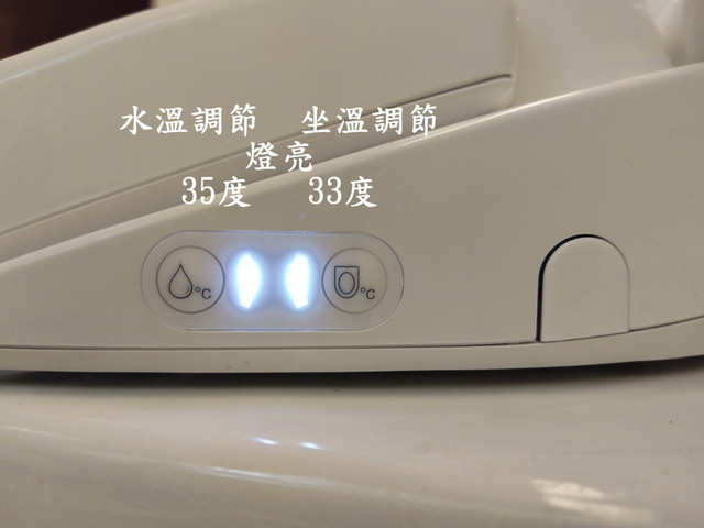 - 面對電腦馬桶座的右側邊,可以調整馬桶座的水溫與馬桶座的坐溫。
