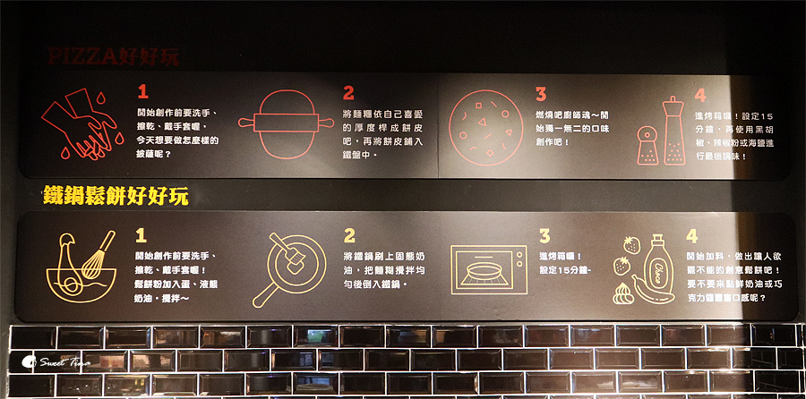 牆壁上有清楚的標示Diy Pizza或鐵鍋鬆餅的流程,這天我們選擇的是Diy Pizza $300 (附一杯聊天飲料)。