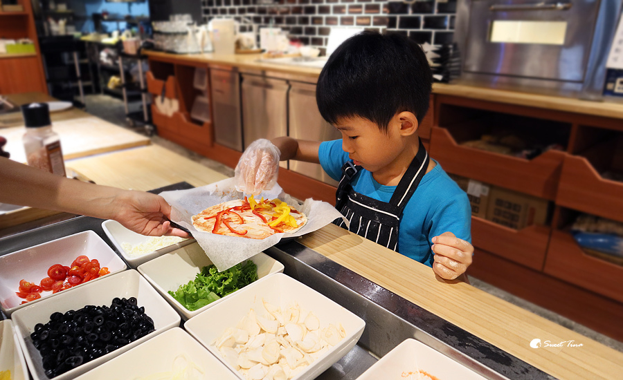 自己完成的pizza成就感十足,而且媽咪也不用再辛苦的收捨廚房,真是開心XD~