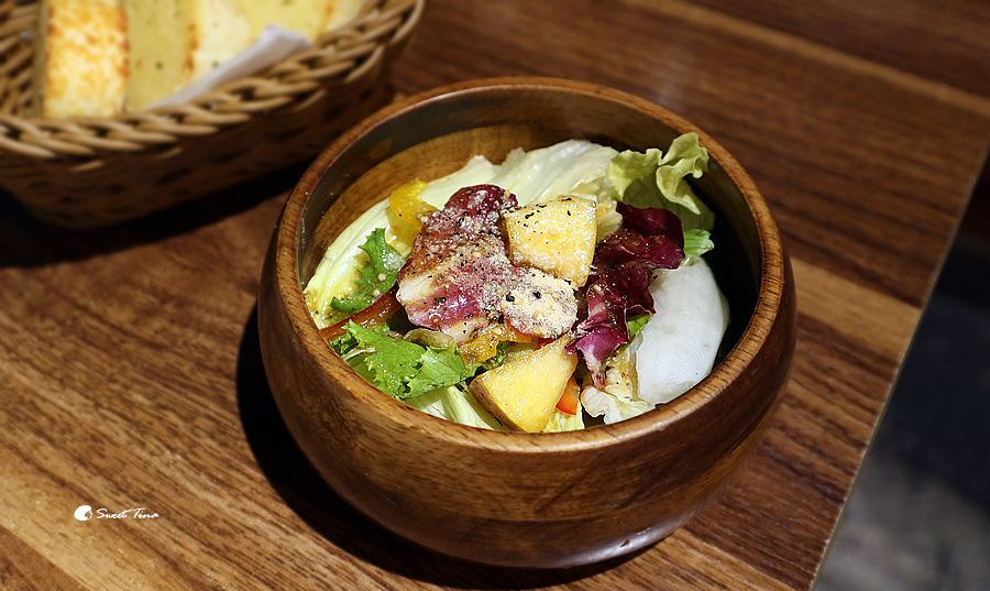 沙拉 - 份量上雖然不大,但有蔬菜、水果,拿來當開胃菜挺剛好的。