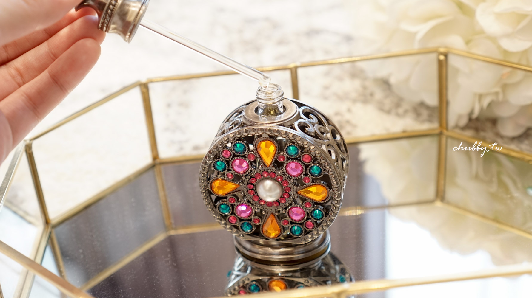 值得一提的是,因為是香精,所以不是用噴灑的方式,而是一根玻璃管,沾取香精出來塗抹到身上。這樣的方式可以準確將香味塗抹到想要的部位,也不會沾取太多,因為真的很濃很濃啊!(到底要強調幾次)