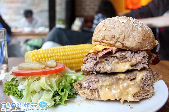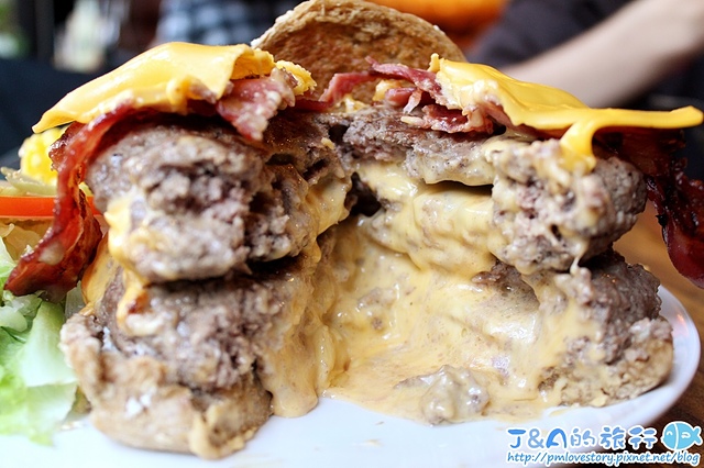 我原本以為爆漿是指肉汁很多的意思,沒想到是在漢堡肉夾了滿滿的起司,