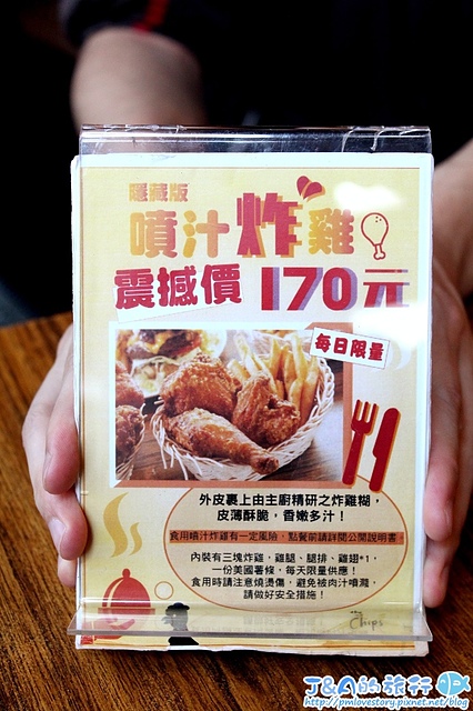 桌面上的小立牌還有菜單上看不到的噴汁炸機可以選擇。