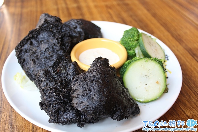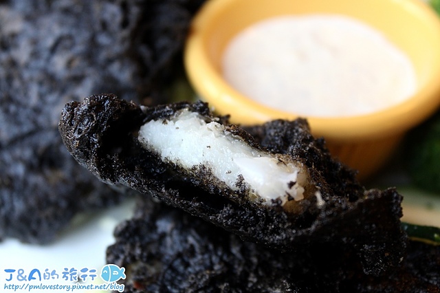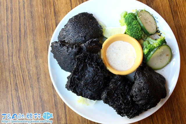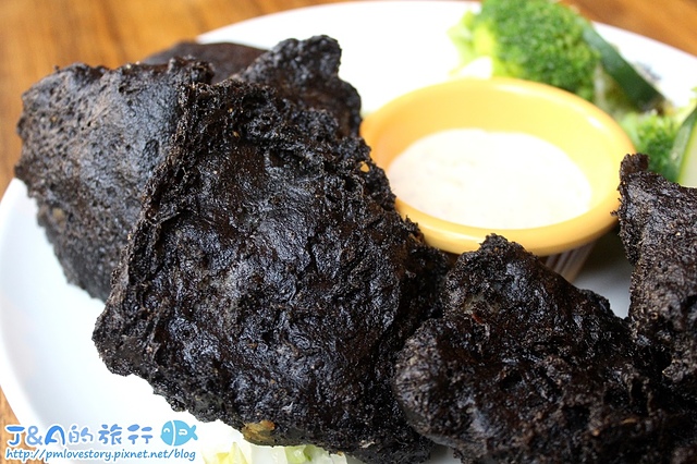 炸黑魚的外層黑色炸衣是以墨魚汁製作而成的,