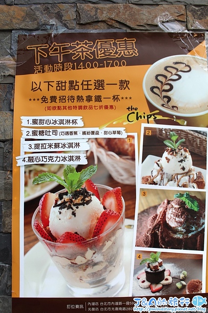 目前還有提供下午茶優惠,四種甜點任選一款還會贈送熱拿鐵一杯。