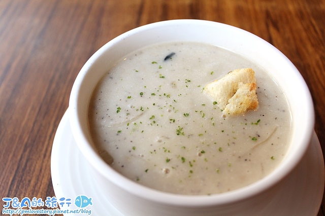 洋蔥濃湯奶味還蠻濃郁的,吃的到不少的洋蔥絲,喝起來口感濃稠滑順,