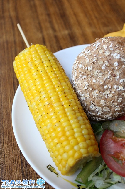 因為前菜已經有個炸魚了,漢堡配菜我就選了奶油玉米啦~