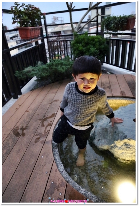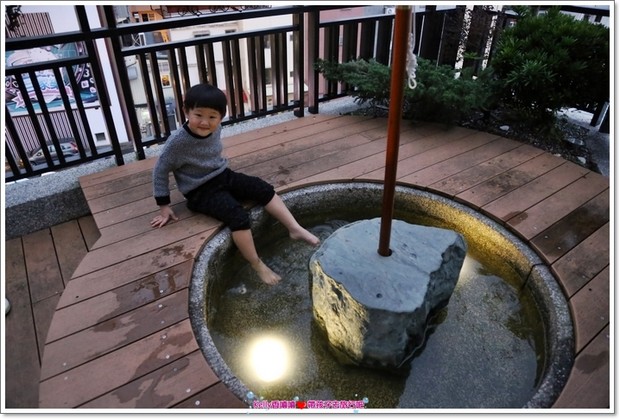 IAN看到戶外的足湯已經迫不及待的泡下去啦~~~麻麻我一直在旁邊阻止,深怕他給我整個下去@@