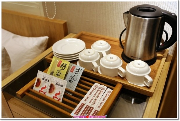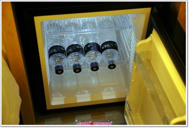 房內有提供煮水壺、咖啡茶包~ 冰箱裡也有提供礦泉水(泡湯後切記要補充水分喔!)