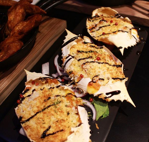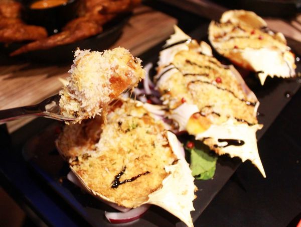 餡料裝填在螃蟹殼裡,是本日最美的一道料理。