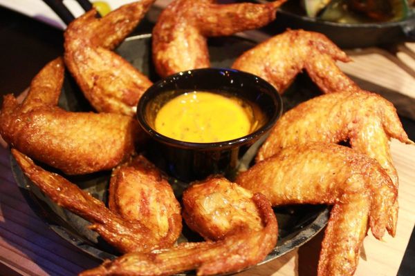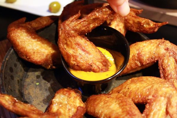 單吃就吮指,沾上水牛城醬汁,酸辣開胃,道道都是配酒好料。