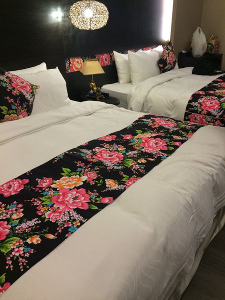 首圖就是波卡拉度假會館中每間房間都具有特色的客家花布
