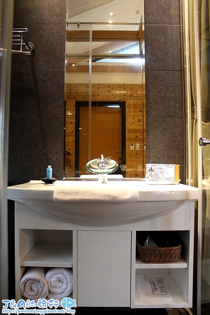 洗手檯的設計還蠻不錯的,下方有足夠的空間擺放毛巾和吹風機,