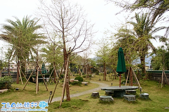 在門口下車後進到度假會館後可以看到有蠻寬敞的戶外空間,