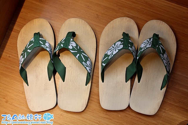 這邊提供的不是煞風景的白色紙拖鞋,而是帶有異國風味的拖鞋呢~