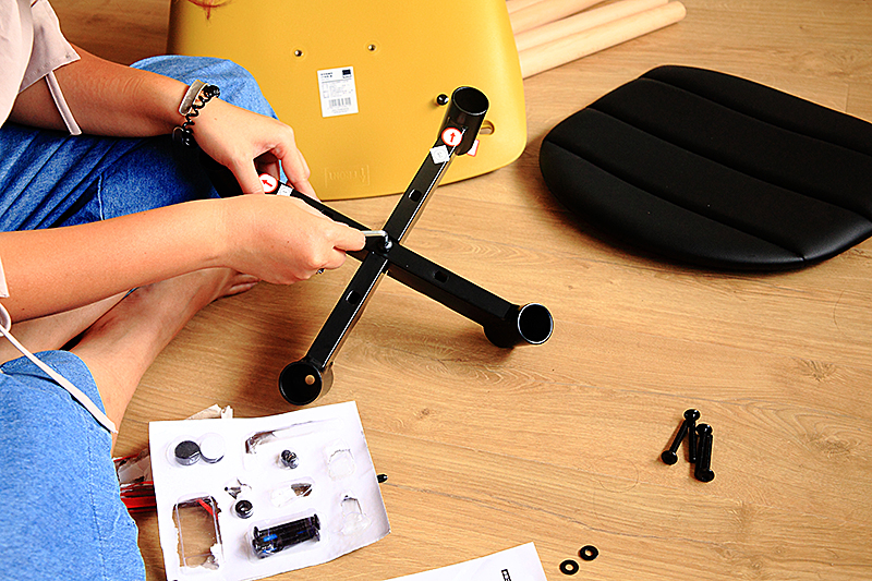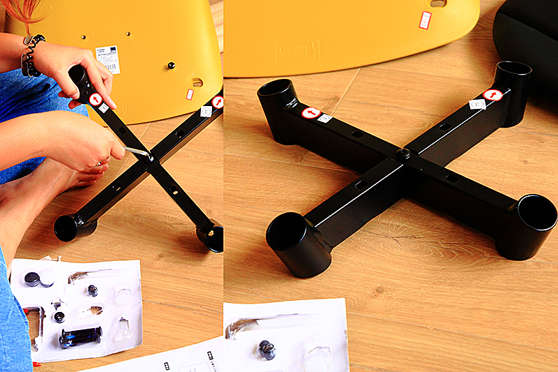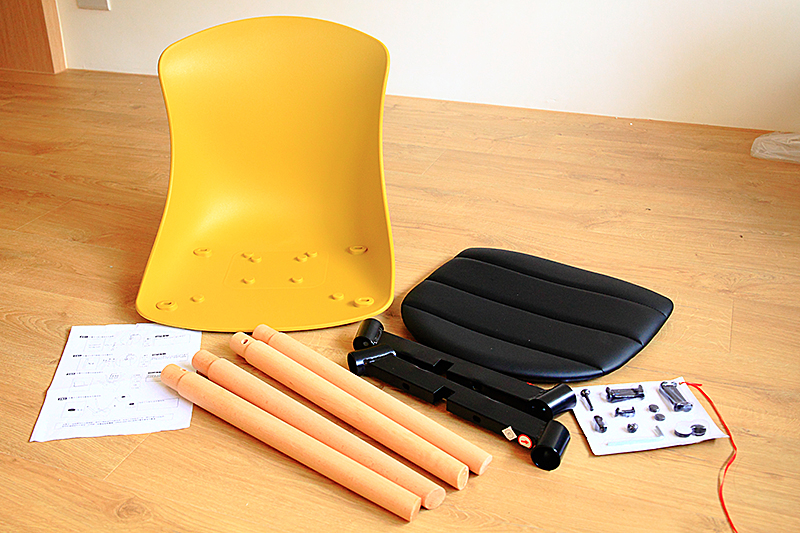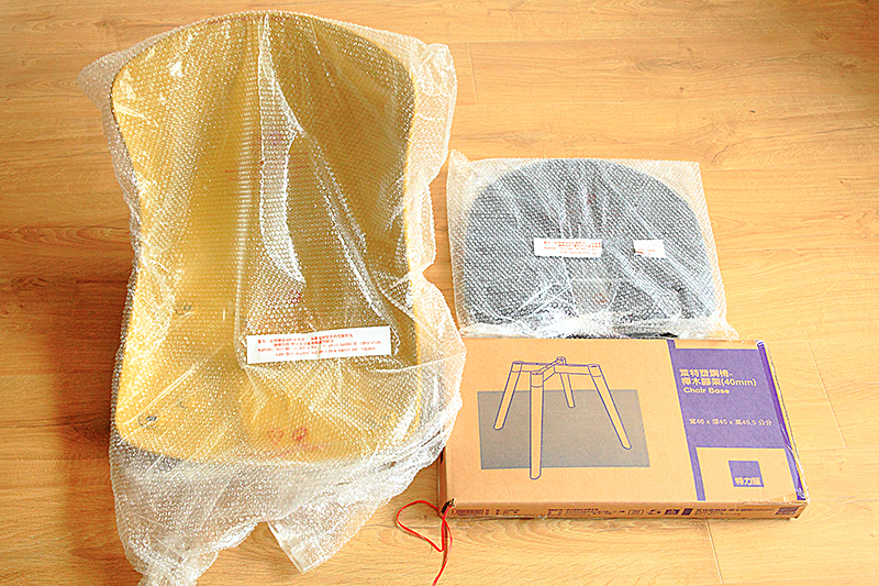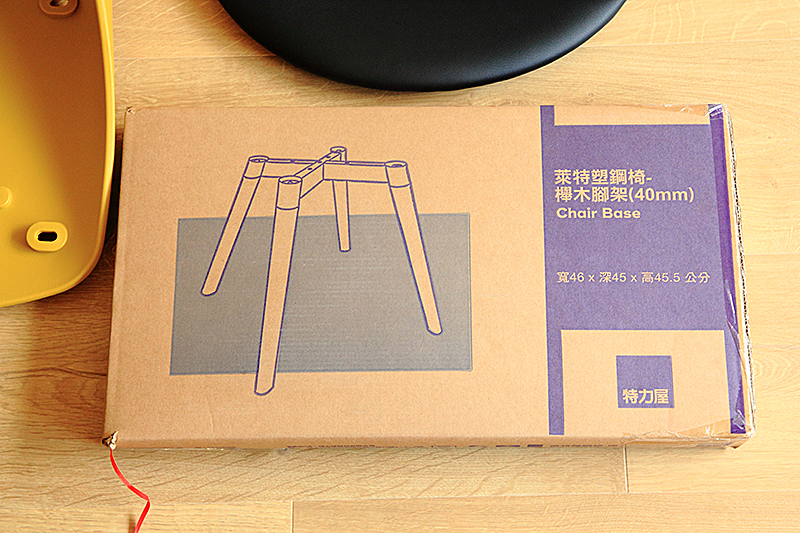 萊特塑鋼椅Wright plastic chair,主要的內容物有:主體顏色、座墊材質PU皮黑色、椅腳款式,3個配件。首先得把支架組起來。