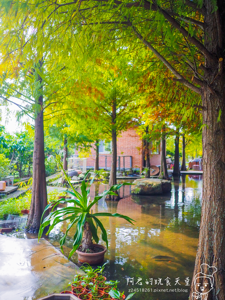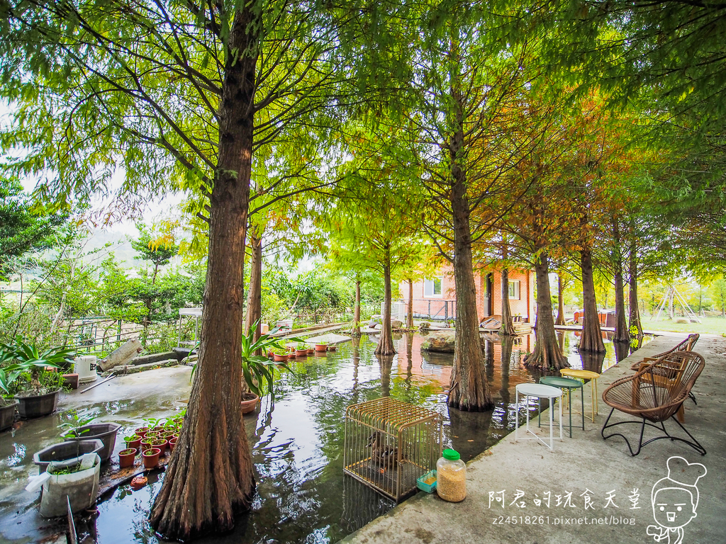 放完行李之後,時間還早,大概是三點左右,就來到了後院這邊的落羽松廊道,坐在椅子上看著這美景,好好的歇一會。都市人常常忙於生活當中,因此錯過了許多,每當來到這種地方,才能體會到何謂「慢活」,在欣賞風景的當下,什麼都緩和下來了,身心靈好像都融入到了景色裡頭。