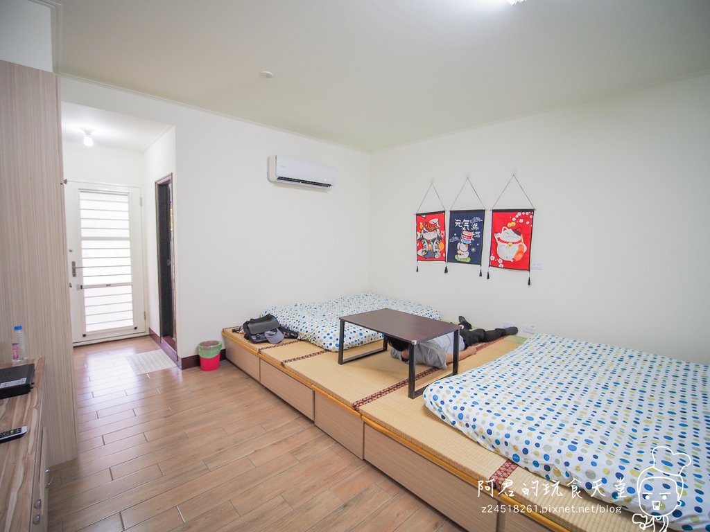 房間宇宙無敵寬敞,走的是樸實風格,塌塌米上面鋪著軟綿綿的床墊,中間的和式桌可以放一些從夜市買回來的宵夜,相當方便。