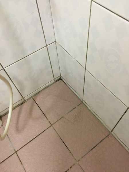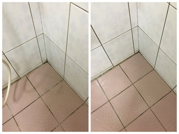 清潔人員直接光腳丫徹底刷洗地板和除霉
