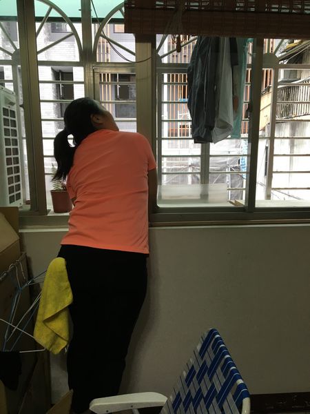 清潔人員協助將穿溝和窗面擦拭乾淨