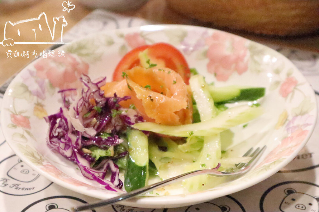 橄欖油的質地及迷人香氣配上粉嫩的燻鮭魚非常開胃!