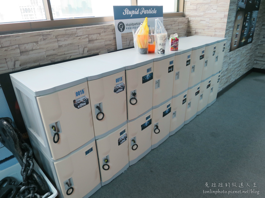 台中笨蛋工作室的大廳很寬敞,假日預約的人潮多,櫃台服務人員也蠻多的。一旁還有寄物櫃可以擺放一些飲料和隨身物品。不過羅伯班克的空間室可以帶包包進去置放的,所以不用在這裡寄物喔!