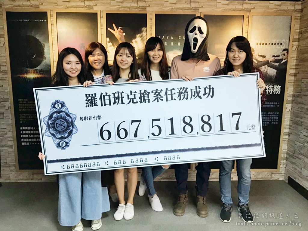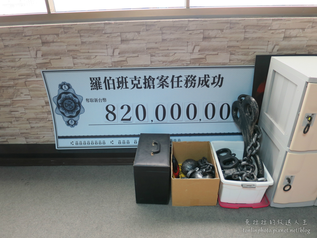 整個過程最爆笑的就是,一開始工作人員會提供一個皮箱,是可以把現場物品帶走的搶匪包,明明組員已經把最昂貴的道具放進包裡,結果我和另一位組員嫌它太大就拿出來了,最後結算的時候少了上億元啊~提醒大家,一定要確認每一項物品的金額再來決定要不要放進皮箱唷!結局以搶走的金額來計算而不是破關的時間,這也是一種新的玩法唷!