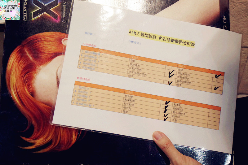 ♡根據客人勾選的結果,設計師再給予髮色的建議,而且透過這樣的調查分析表,更能幫助到客人挑選到適合自己的髮色,有時候我們喜歡的髮色未必就