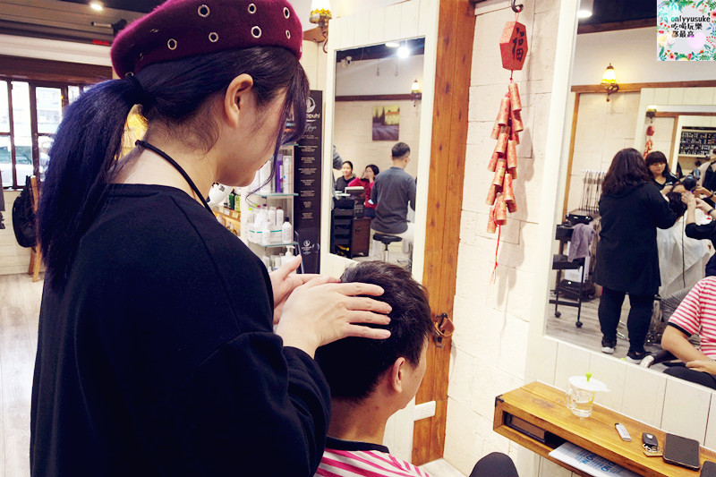 ♡感覺設計師真的非常專業,從她非常專注的眼神可以感受到她看待客人的認真程度,今天幫芬達哥服務的設計師是Ling。