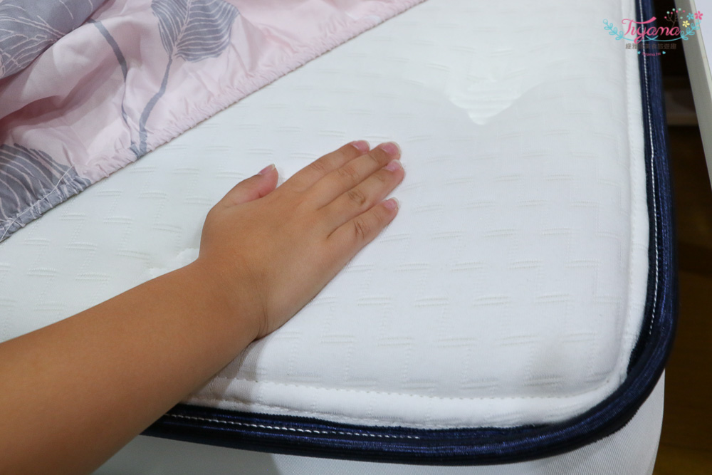 小朋友體溫高,常常睡到半夜背後濕一片,有時還要特地起床幫她換衣服,不知是否太舒服,自從換新床後,緹緹整夜好眠幾乎沒什麼亂翻亂動,我自己半夜小熱醒來…習慣性摸她的額頭和背,流汗情況有大大的改善,透氣性滿分(比讚)