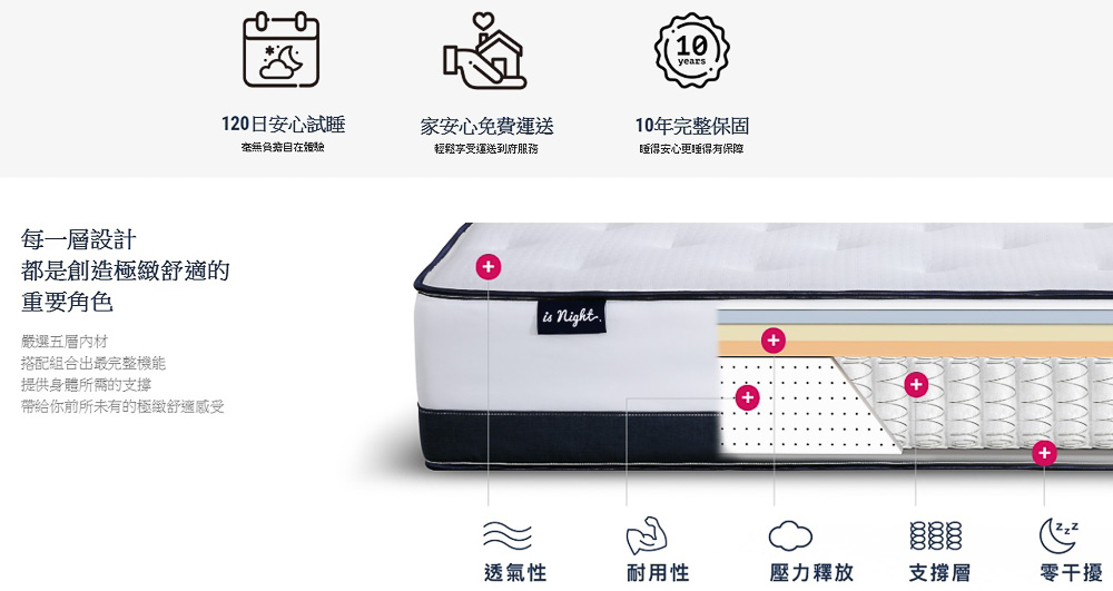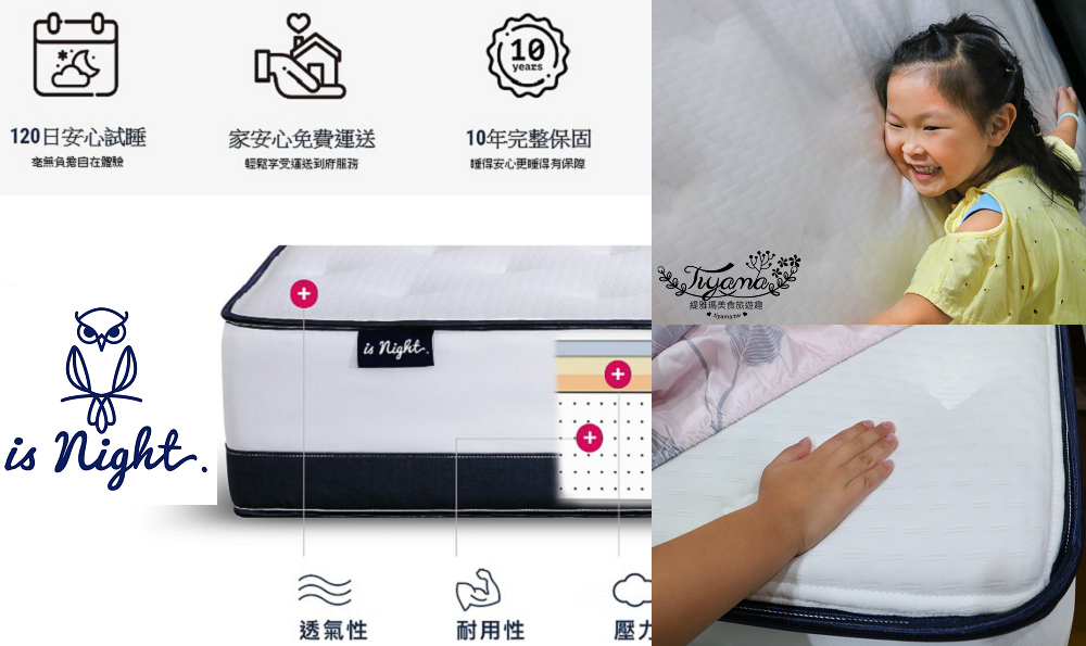 擁有一張高品質好床讓你整夜好眠,台灣在地床墊品牌『晚安奈特is night』推出的"恆溫柔彈獨立筒床墊",號稱"透氣零悶熱",還有120日安心試睡、10年完整保固、免費運送到府,哇…竟然有這麼大氣的廠商,讓你120日試睡!!套一句廣告台詞,實在是"揪感心"