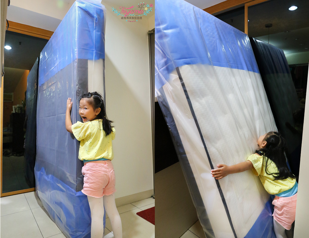 司機先打電話和我確認送貨時間,專程為我送到家,親切服務滿分!!床墊完整厚外袋密封包覆,上下加層保護,因為我們看黃曆選安床時間,所以請司機先放置於客廳,一回到家看到床的緹緹馬上興奮不已