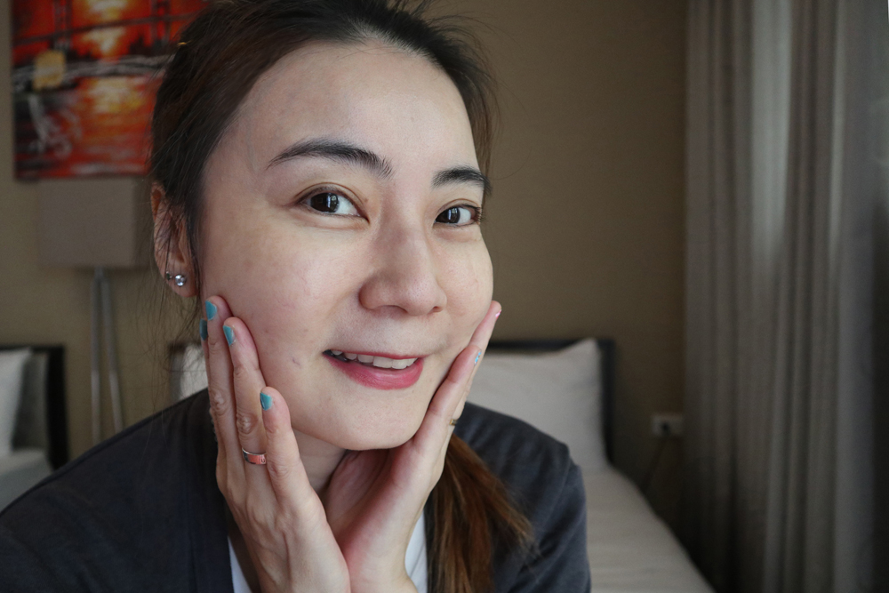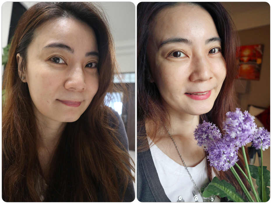下圖左:洗臉前的肌膚有點暗沉,看起來沒精神。