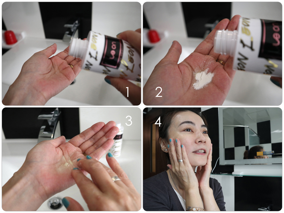 2. 取適量潔顏粉(約0.5~1g,相當於一元硬幣大小)
