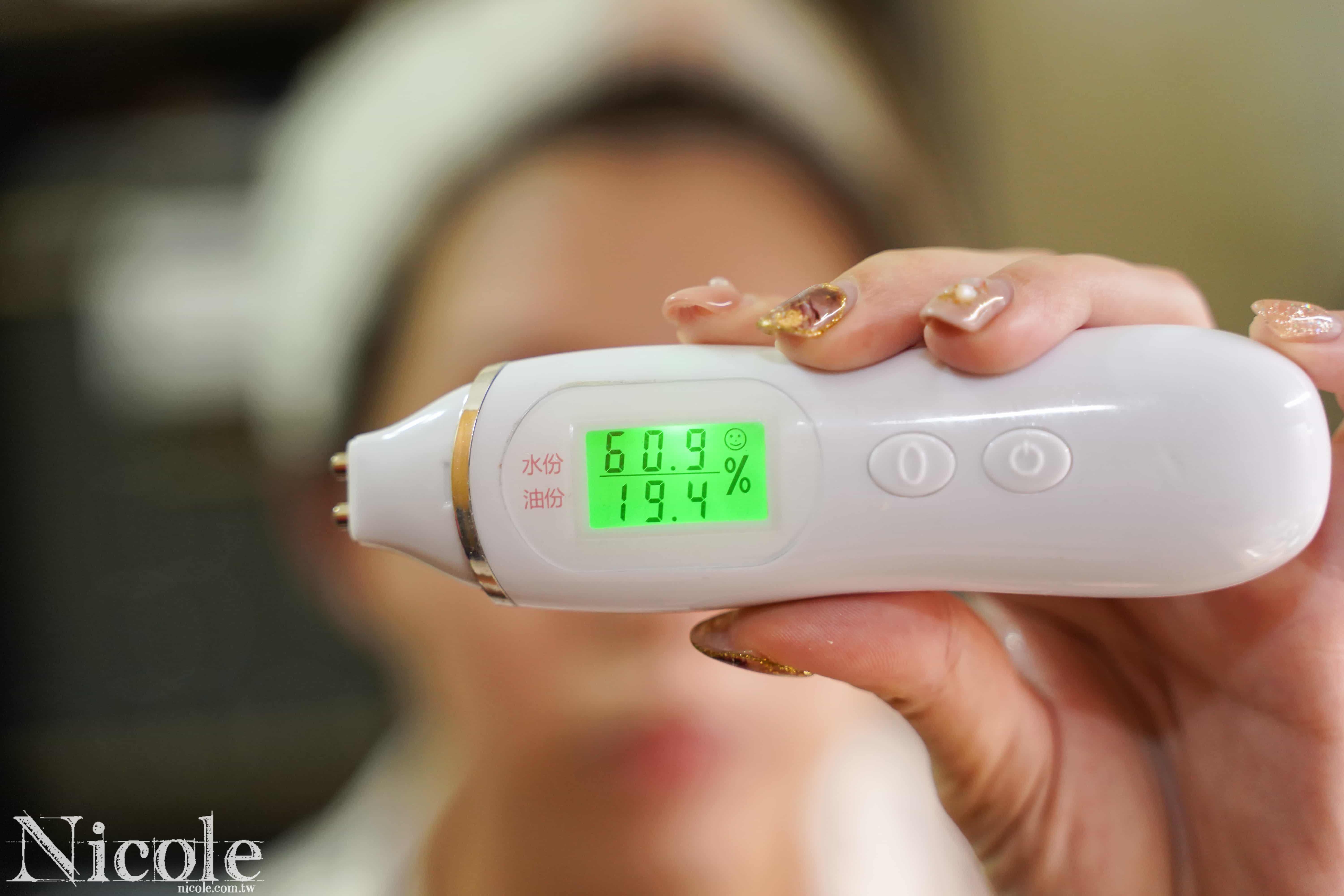 洗完臉後未使用Le On麗容妝品修護精華之前的肌膚水分只有54.4%,對我這個乾性肌膚來說算是偏乾!所以必須立即為肌膚補充水份,乾枯肌的人真的一定要重視保濕鎖水啊,不然真的會後悔一輩子。