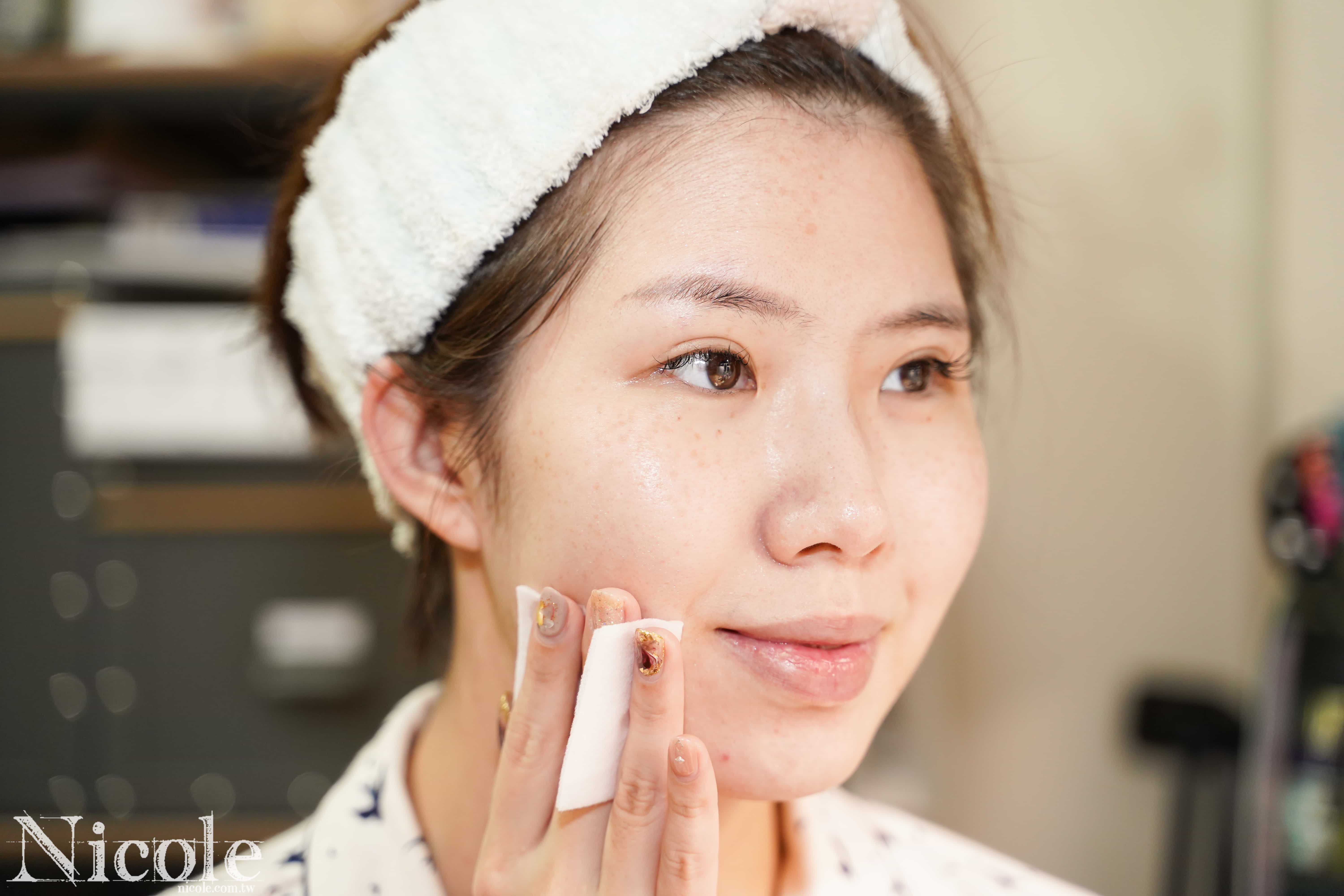 我自己都會沾濕化妝棉擦拭全臉,因為化妝棉也可以為肌膚擦拭掉表層髒污!之後再比較乾燥的部位特別加強,讓滿滿的水分都讓肌膚吸收,還有最容易被忽略的頸部也必須要擦拭到,這樣頸部才可以一同做保養,也因為是無添加酒精,所以敏弱性膚質的朋友也可以使用哦!我個人非常喜歡Le OnE.G.F.s+™ 全效修護精華露的質地與保濕度!因為我是超乾肌,是非常缺水的!所以必須要有真正可以補水的化妝水,肌膚有沒有真正的補水、保濕其實一看就看得出來!肌膚有喝足了水份自然就會由內而外的透亮出來。