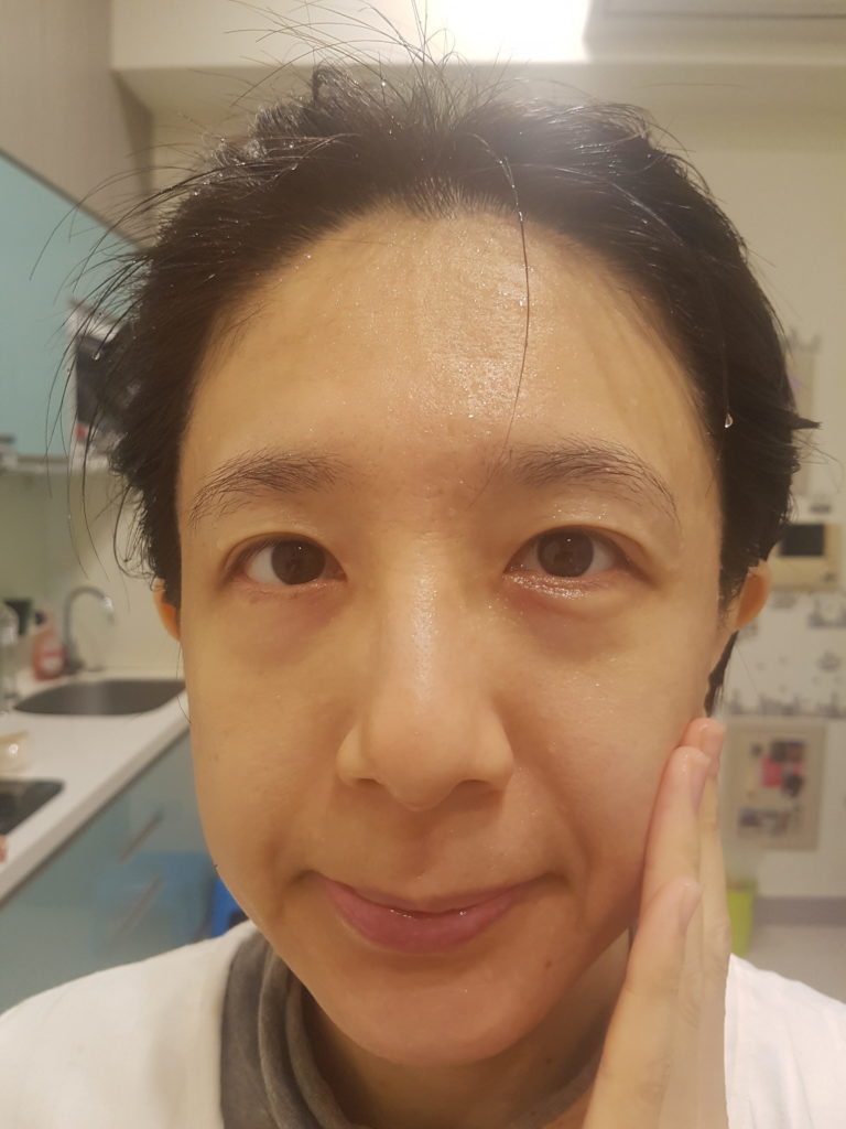 額頭臉頰輕拍,肌膚很快就吸收、滲入,不黏膩的感覺真好,但又有滿滿的保水感。