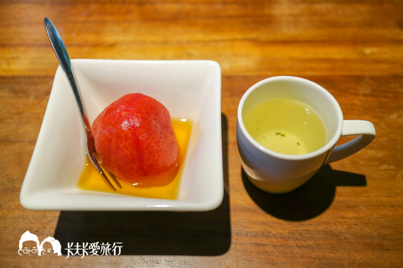 每道菜中間,都會有特色飲品,這道手釀花果醋以純手工釀製而成,可清爽口腔味蕾,平衡體內酸鹼值