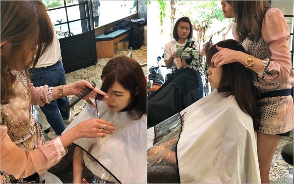 洗髮時,助理有提醒確認,是否記得Yumi剛剛說的潤髮方法,