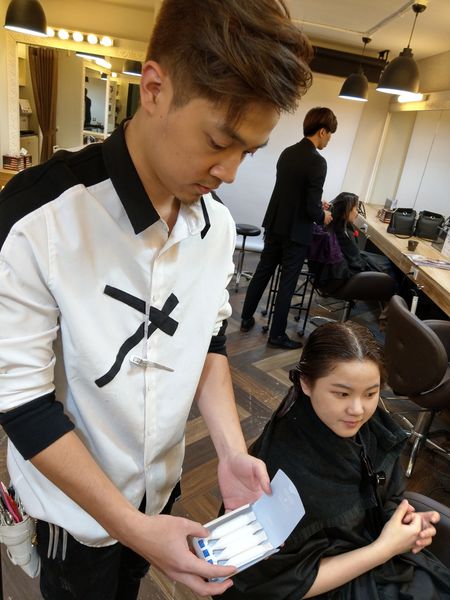 在染髮前,設計師Channel很親切地與我討論想要的顏色及髮型![]()