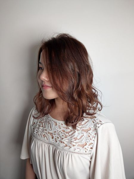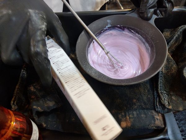 在經過一番討論過後,我選擇了髮尾染粉紫色,而中段是棕紅色,靠近頭皮是棕色