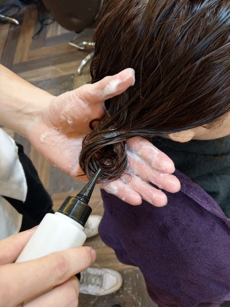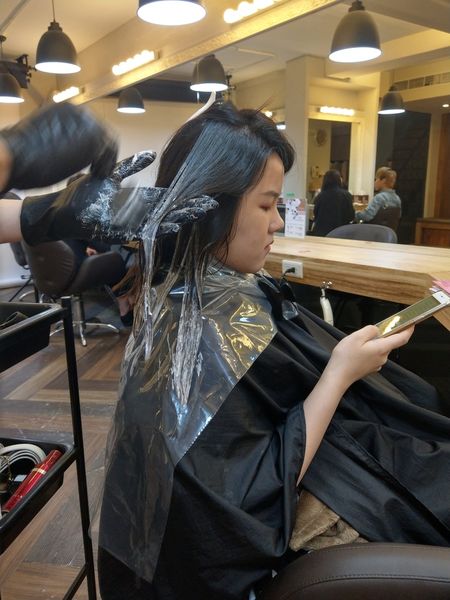 在這裡也有小小的建議,在染髮前一晚可以不用洗頭,讓頭皮有一層天然的油脂作為防護,避免染劑造成頭皮不適
