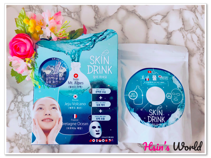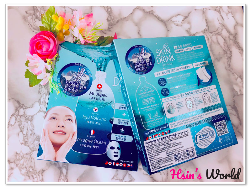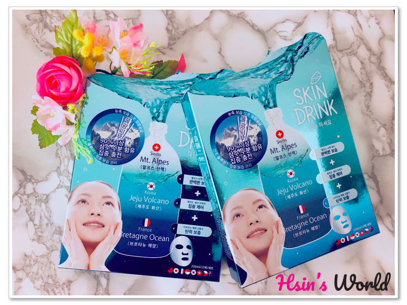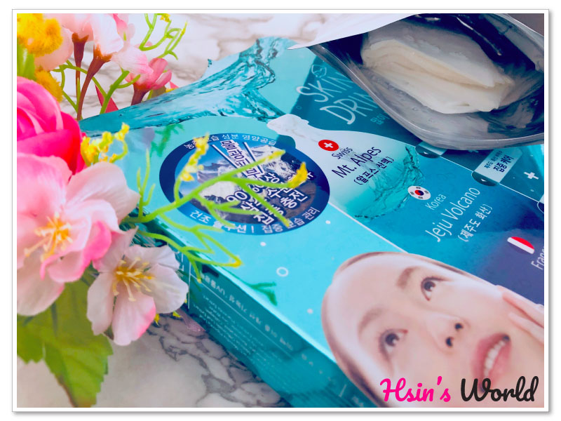 韓國SKIN DRINK水效速感新生系列面膜就是使用了三大好水(韓國濟州島火山岩盤水、瑞士阿爾卑斯山雪水、法國布列塔尼海洋深層水),而除了好水之外還有來自世界八國的美肌成分,包含了澳洲羊胎盤萃取、膠原蛋白、玻尿酸、阿爾卑斯山花精…等。