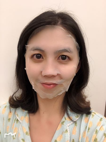 面膜敷在臉上有種淡淡的清香味,滿好聞的