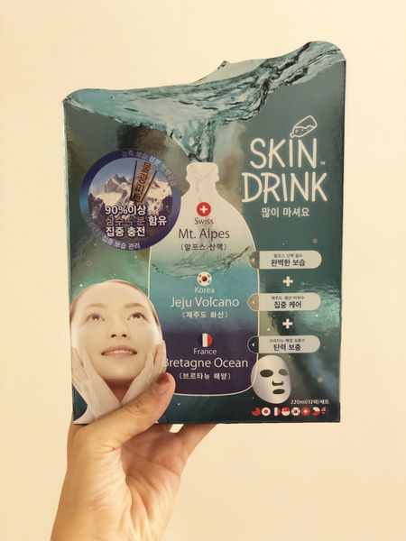 SKIN DRINK面膜採用世界最好的三大水韓國濟州島火山岩盤水、阿爾卑斯山雪水、法國布列塔尼海洋深層水