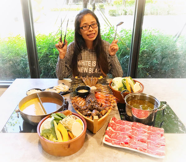 這次女孩選了牛奶起司湯底(右),舅舅選了原味湯底(左),兩種湯底放在一起好對比呢,鴛鴦鍋的組合,可以自己享受自己的,不去干擾對方,就算是吃素食鍋的朋友也可以開心享用